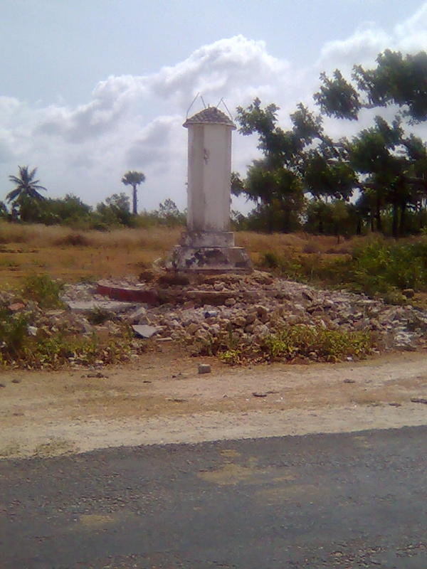 | படுகொலை செய்யப்பட்டவர்களுக்காக தமிழீழ விடுதலை புலிகளால் அமைக்கப்பட்ட தூபி இலங்கை ராணுவத்தால் இடிக்கப்பட்டபோது |