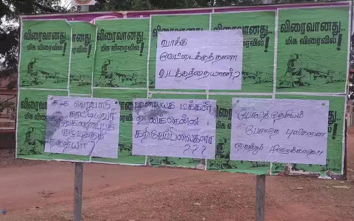 கரைச்சி பிரதேச அபிவிருத்தி குழு கூட்டம், இன்று (செவ்வாய்க்கிழமை) நடைபெறவுள்ள நிலையில், இவ்வாறு விமர்சிக்கப்படும் வகையில் சுவரொட்டிகள் ஒட்டப்பட்டுள்ளமை பெரும் சர்ச்சையை தோற்றுவித்துள்ளது.